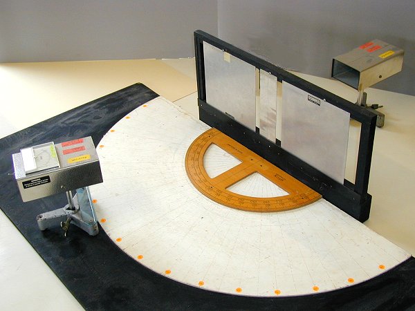 The double slit in made from 3 sheets of aluminium. The receiver incorporates a meter to measure the intensity of the microwaves.