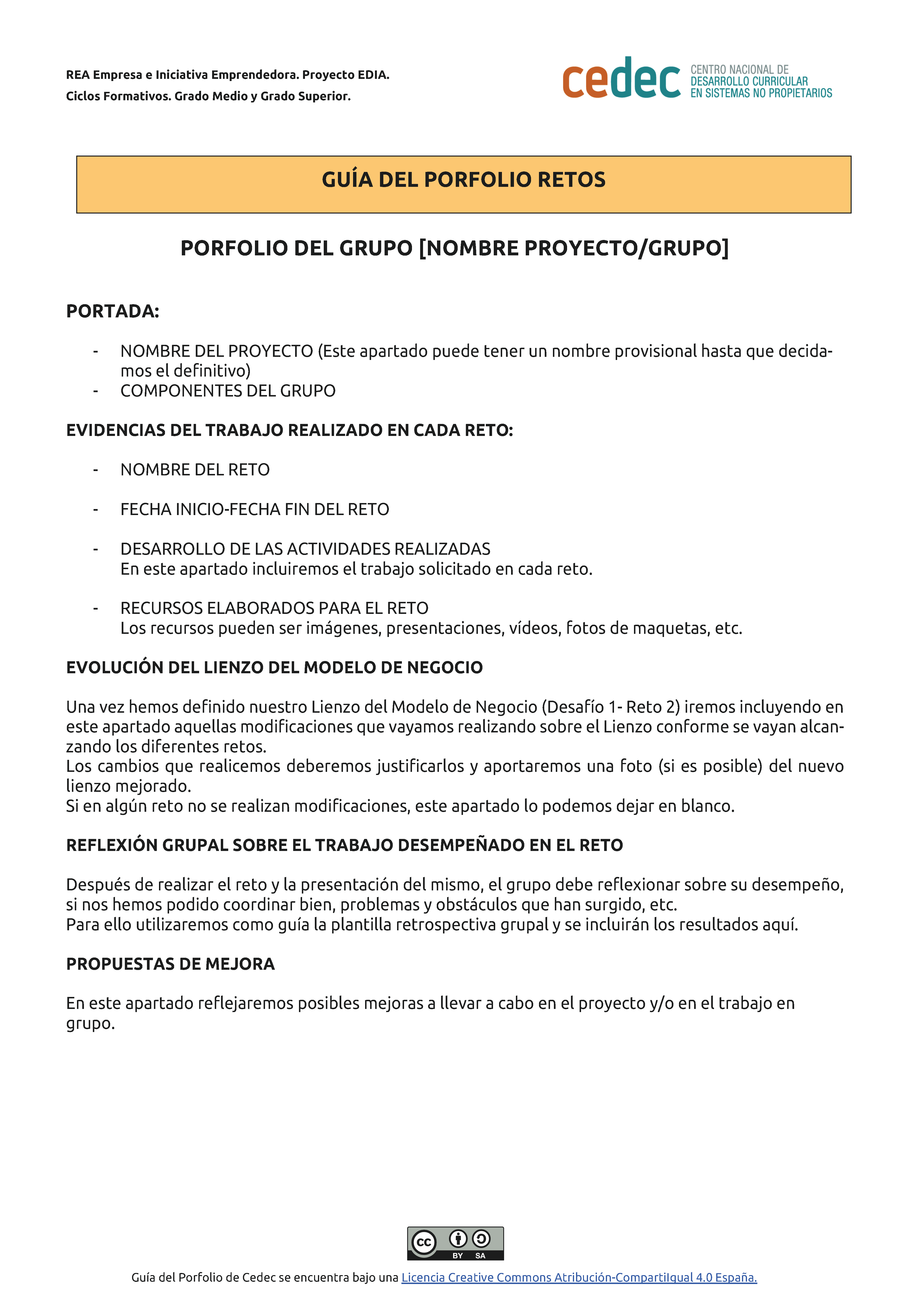 Esta Guía para crear un porfolio la podemos descargar en formato editable odt y en pdf. Hemos de compartir el porfolio con nuestro profesor o profesora.
