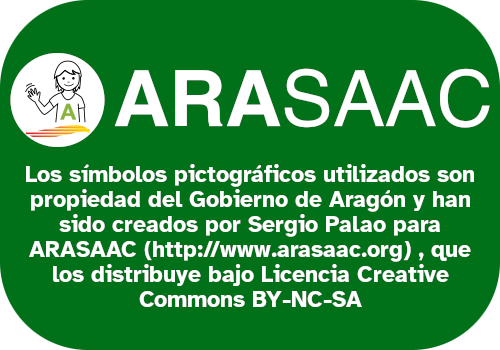 Los símbolos pictográficos utilizados son propiedad del Gobierno de Aragón y han sido creados por Sergio Palao para ARASAAC (http://www.arasaac.org) , que los distribuye bajo Licencia Creative Commons BY-NC-SA