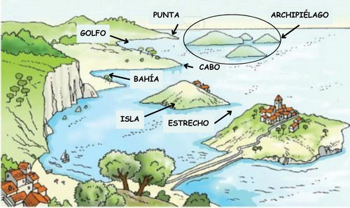Isla. Son terrenos rodeados de mar por todas partes. Un grupo de islas cercanas forman un archipiélago.
