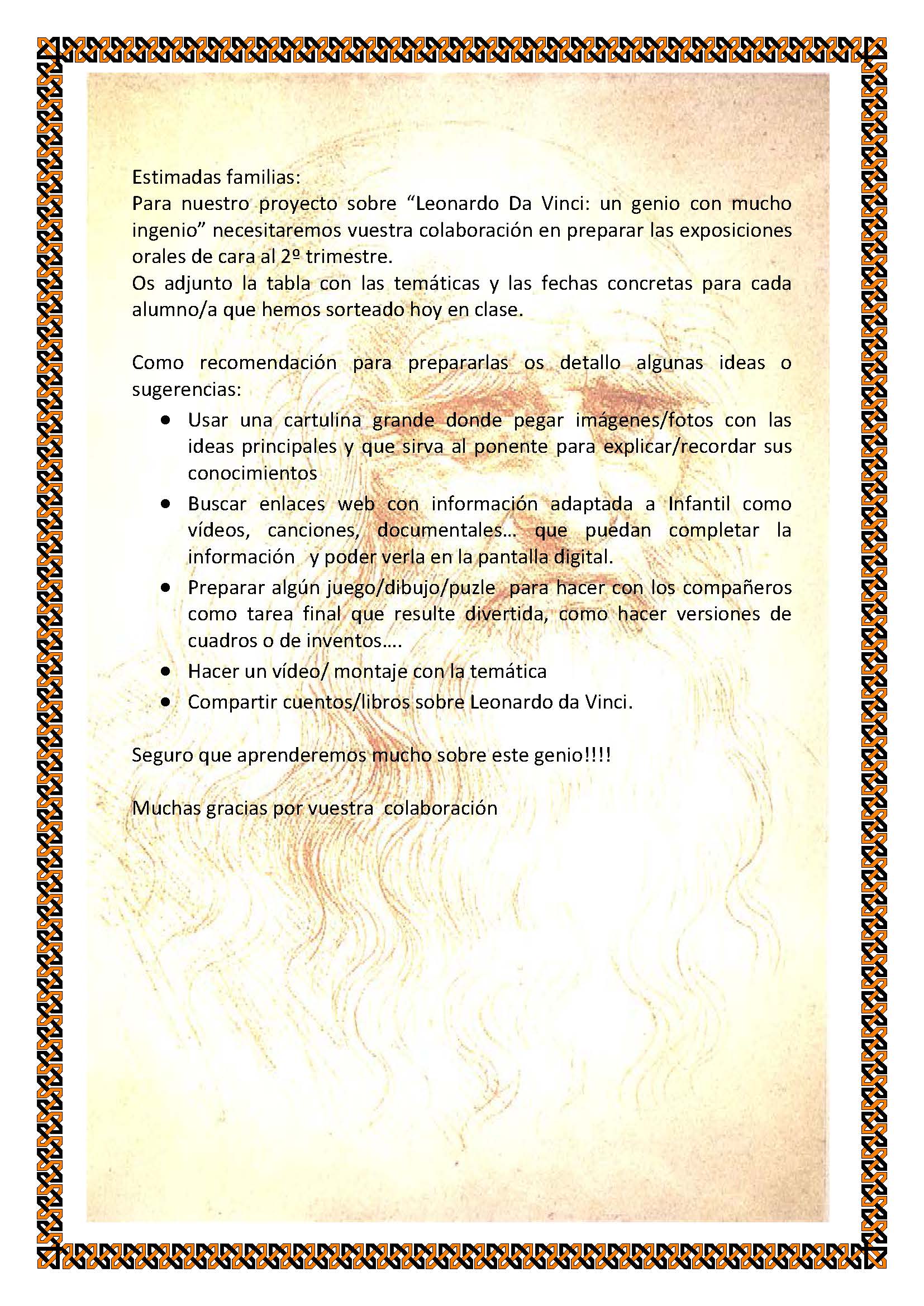 Vamos a organizar la información para que cada alumno/a busque una parte, centrado en una temática concreta y los sortearemos para realizar una tarea de exposición oral con ayuda de las familias.