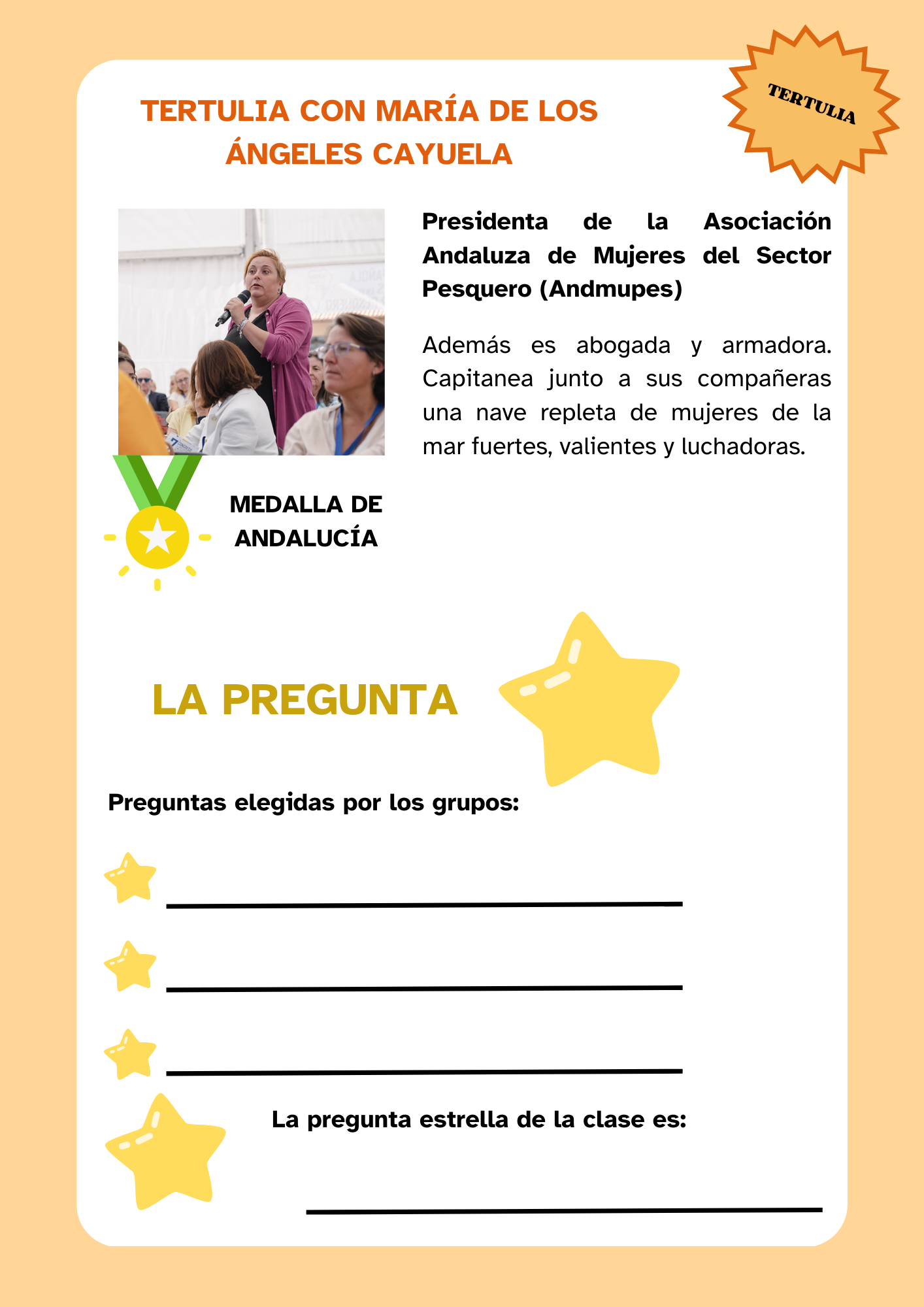 Para el Día Internacional de la Mujer 8M conocemos a María de los Ángeles Cayuela, Armadora de pesca ALMERIENSE: Participamos en una TERTULIA, tal y como indican las INSTRUCCIONES 21 DE JUNIO DE 2023 de lectura. María Sánchez Rodríguez. Tertulia con Mª Angeles Cayuela