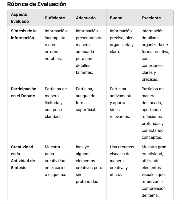 - Evaluar el aprendizaje mediante una actividad de síntesis grupal.