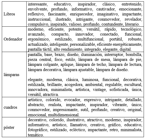 Emplea adjetivos como grande, pequeño, alto, mucho, poco…, nombres de colores, de muebles, de objetos…