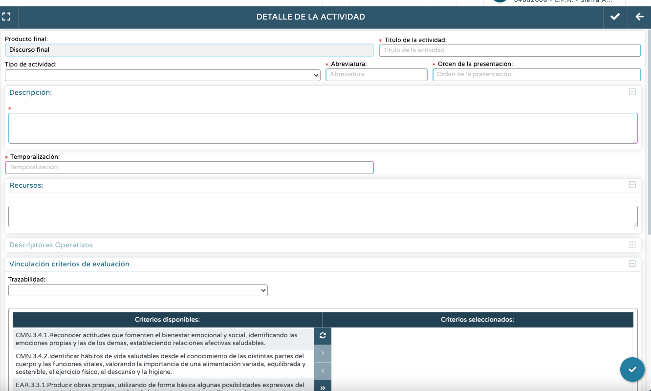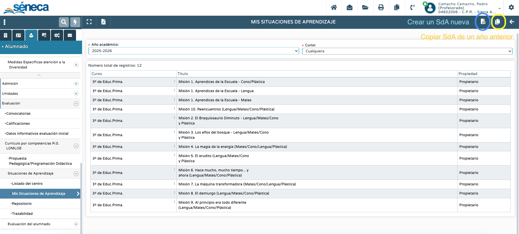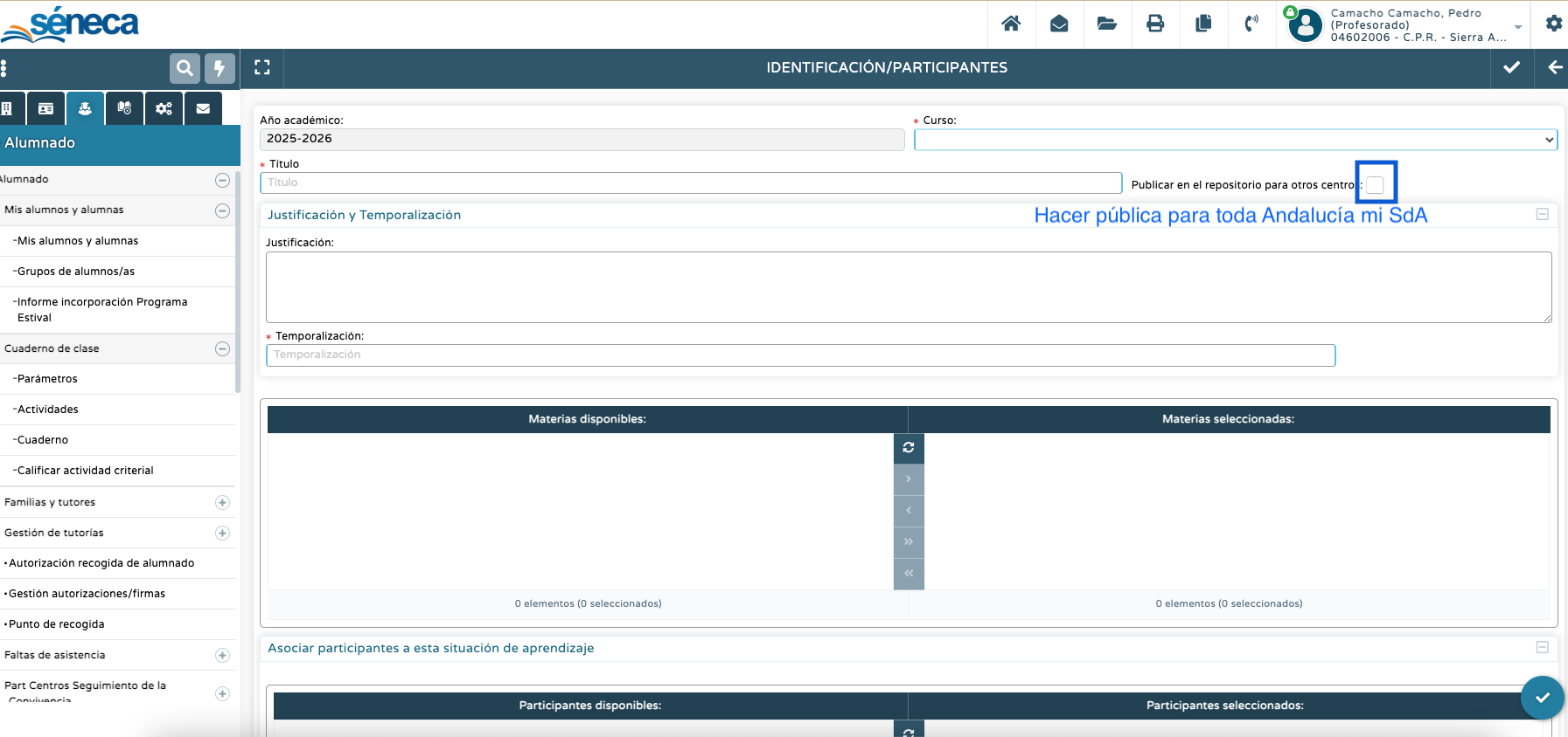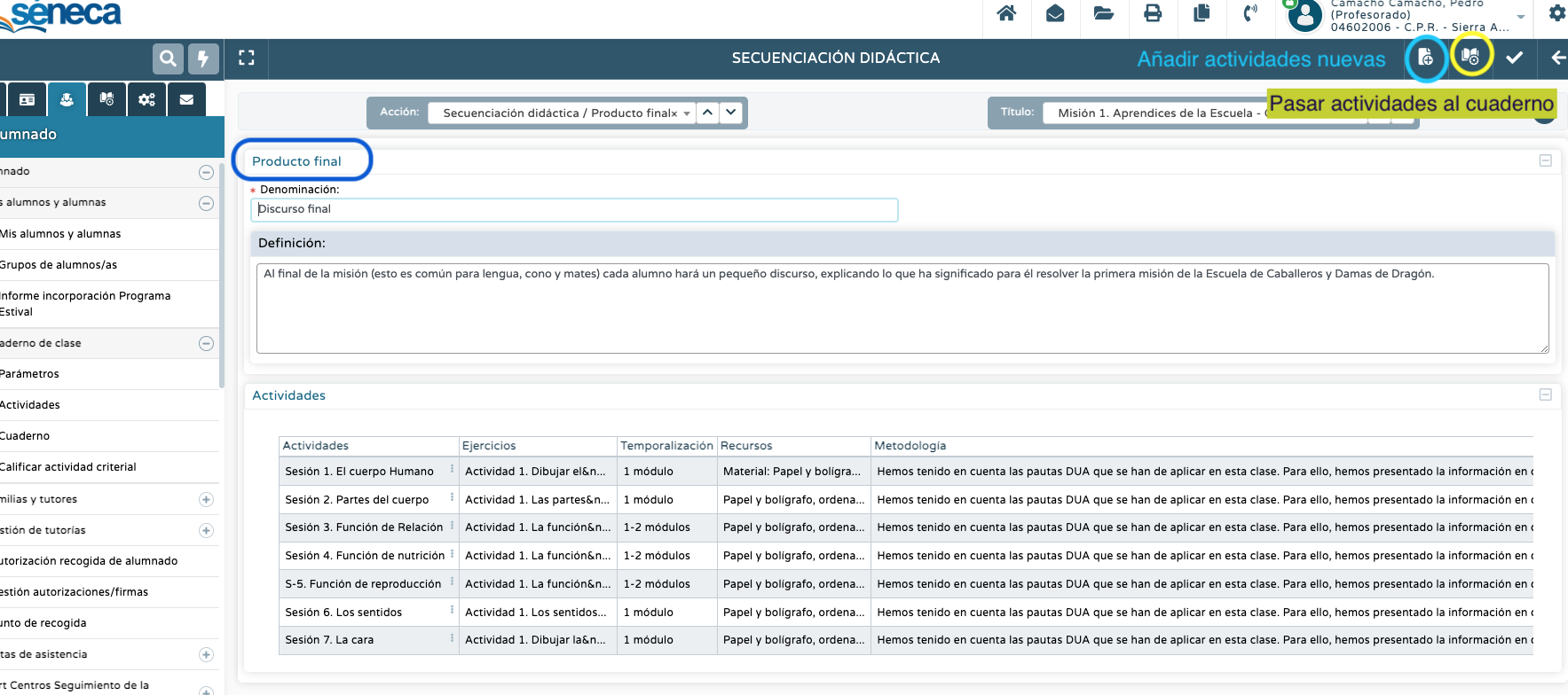 Las SdA en S茅neca 01. Cargar Grupos en S茅neca 02. Mis Situaciones de Aprendizaje 03. Crear nueva SdA - Identificaci贸n de participantes. 04. Apartados de la SdA 05. Concrecci贸n Curricular 06. Secuenciaci贸n did谩ctica - A帽adir actividades/Pasar al Cuaderno 07.1. Detalles de la actividad 07.2. Detalles de la actividad