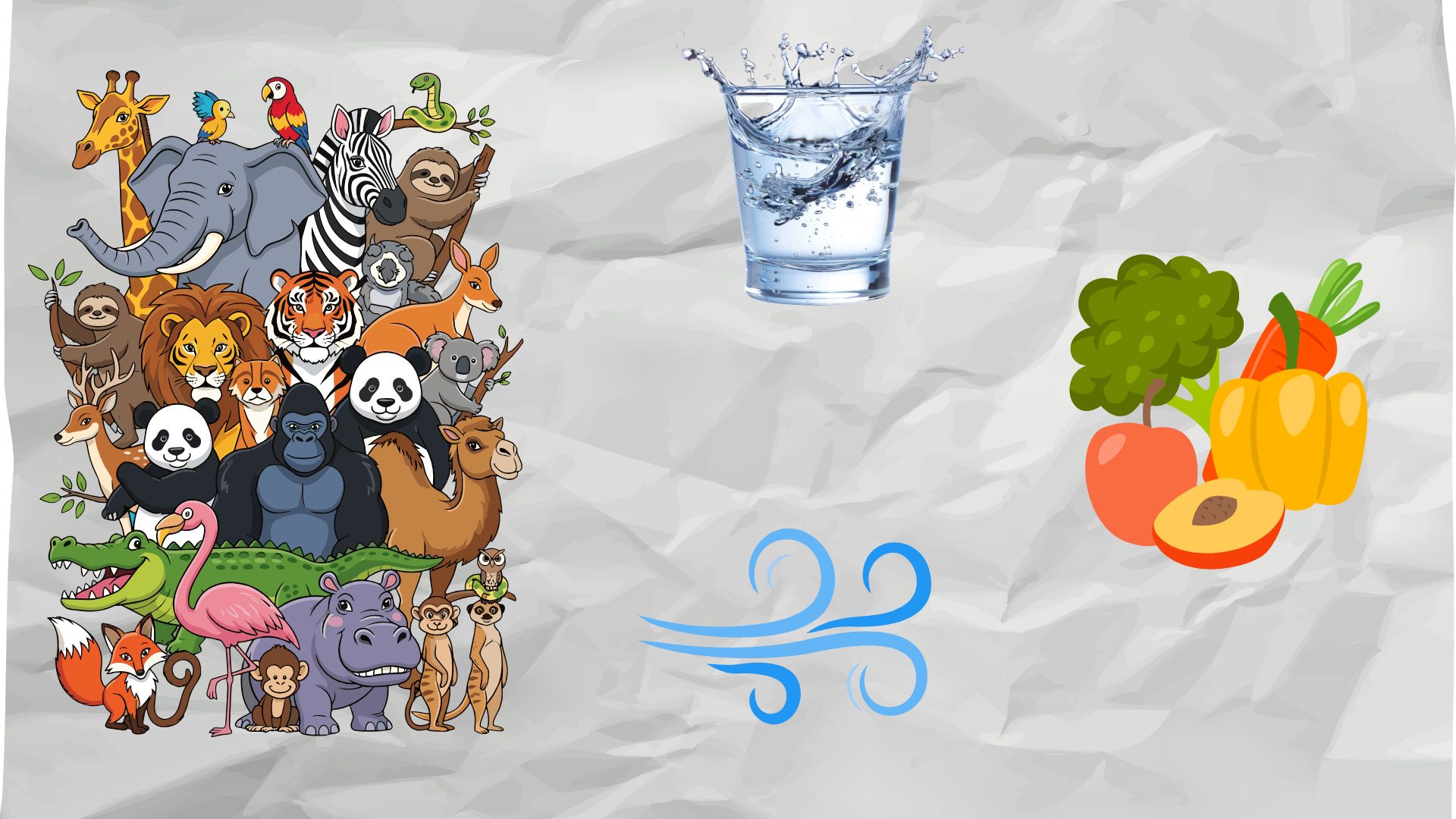 Los animales necesitan agua, aire y alimento.
