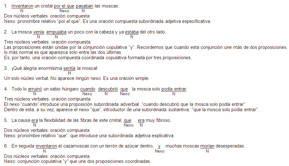 La actividad consiste en separar todas las oraciones del texto y clasificarlas en estos grupos: