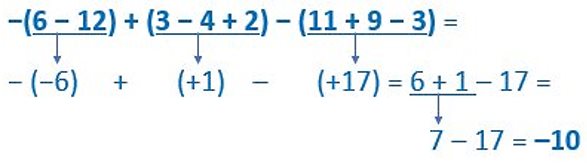Ejemplo → (2 – 9) – [5 + (8 – 12) – 7] = –7 – [5 – 4 – 7] = –7 + 6 = –1
